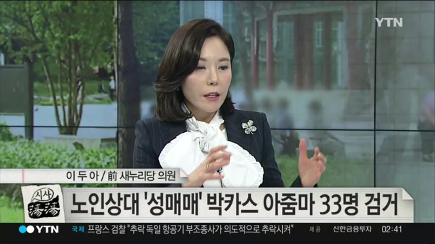 그럼에도 불구하고, YTN이나 TV조선의 시사 뉴스 프로그램에서 특히 눈에 띄는 패널이 있는데, 그 주인공은 이두아 변호사이다.