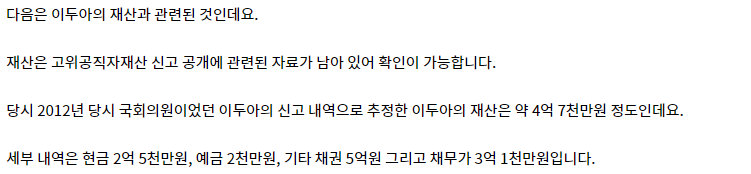 본 글에서는 이두아 전의원의 정치 성향에 대해 논하지 않으려 한다. 그러나 그녀가 뉴스 프로그램에 등장하여 이야기하는 모습이 매우 매력적이며, 이를 칭찬하고 싶다는 개인적인 취향을 밝혔다. 그녀가 뉴스에서 어떤 내용을 발언하는지는 중요하지 않으며, 그녀의 목소리 또한 매우 마음에 든다.