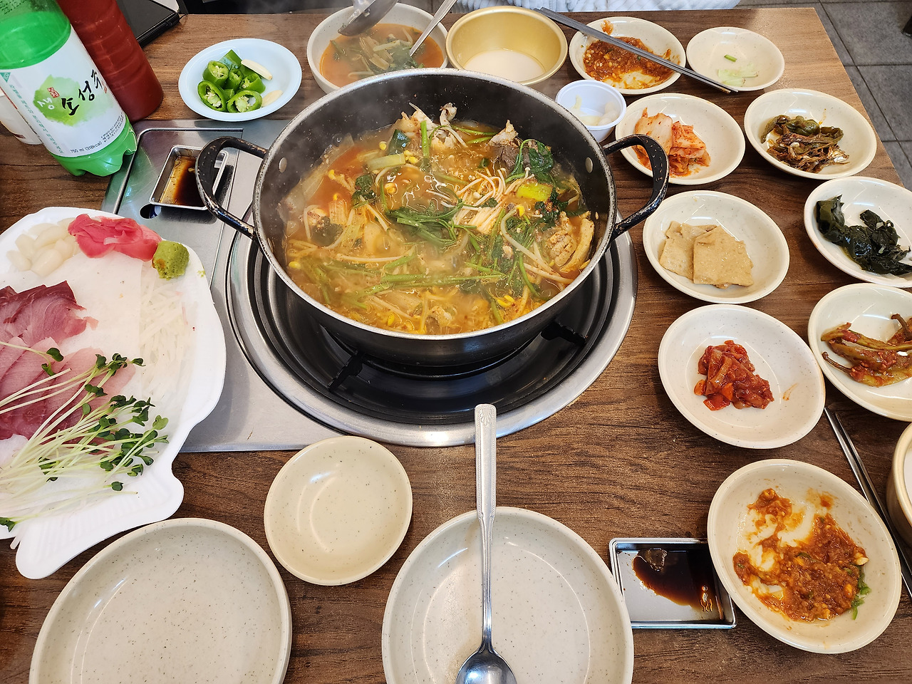 미락회양념에서의 식사는 쾌적한 환경 덕분에 더욱 특별했습니다. 학생식당과 비교했을 때, 넓은 자리와 깔끔한 분위기는 가족 단위 방문객들이나 조용히 식사를 즐기고 싶은 분들에게 최적의 선택입니다. 기본 상차림 또한 정갈하게 제공되어 방어회의 풍미를 더욱 돋보이게 해 주었습니다. 매운탕의 국물은 방어 서더리의 깊은 맛이 잘 우러나와, 첫 숟가락부터 마지막까지 그 풍미를 고스란히 느낄 수 있었습니다.