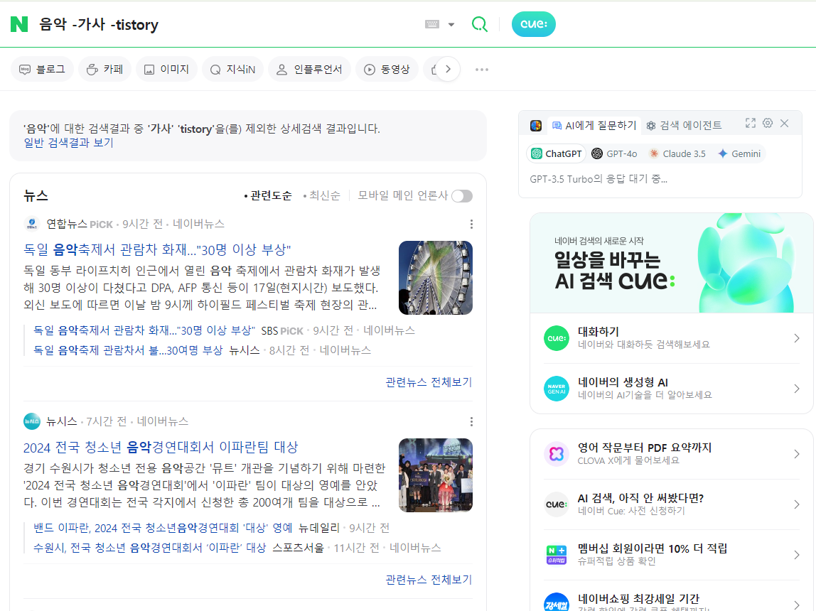 - 마이너스(-) 연산자 사용: 구글과 마찬가지로 네이버에서도 마이너스 기호를 이용해 특정 단어를 제외할 수 있습니다. 예를 들어, "음악 -가사"라고 검색하면 음악에 관한 정보는 나오지만, 가사와 관련된 검색 결과는 제외됩니다.