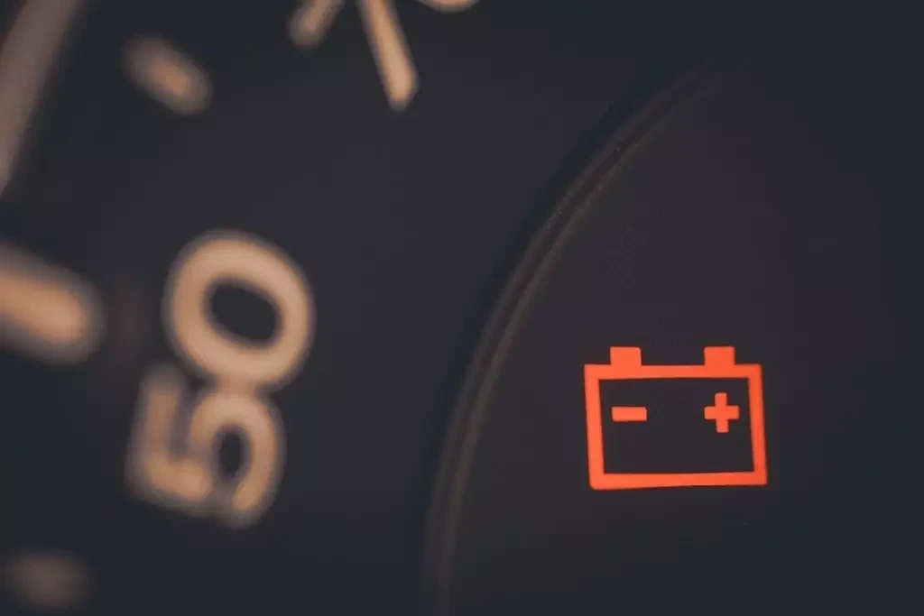 - 빨간 ‘P’ 원형 아이콘에 느낌표가 함께 표시. 센서 오류·모터 불량·12V 배터리 전압 강하가 원인.