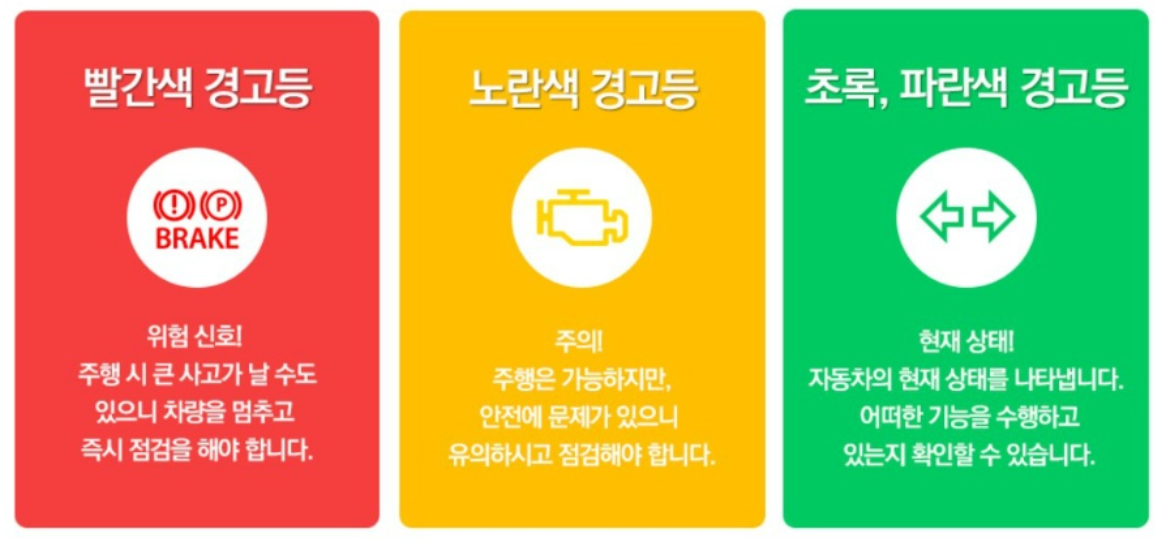 빨간색 자동차 경고등 종류 - 즉시 정차 또는 정비소 입고