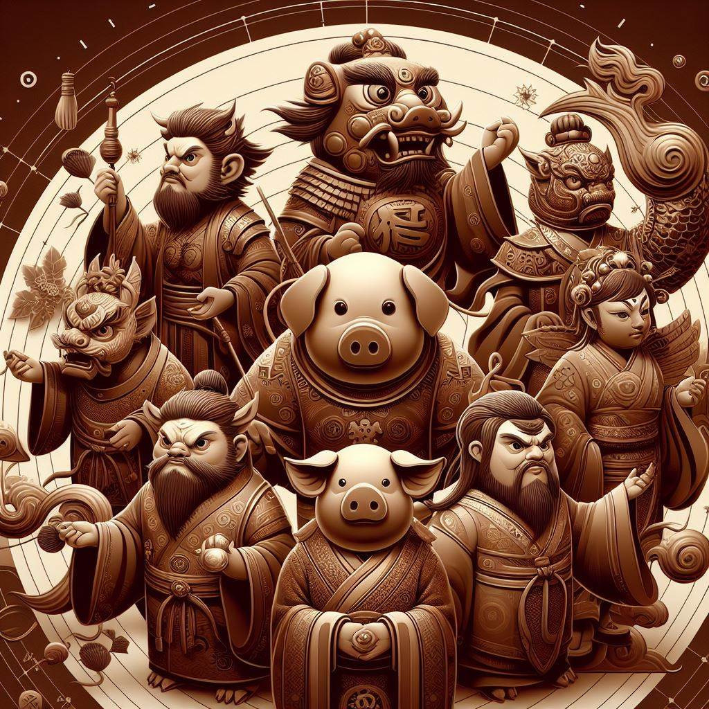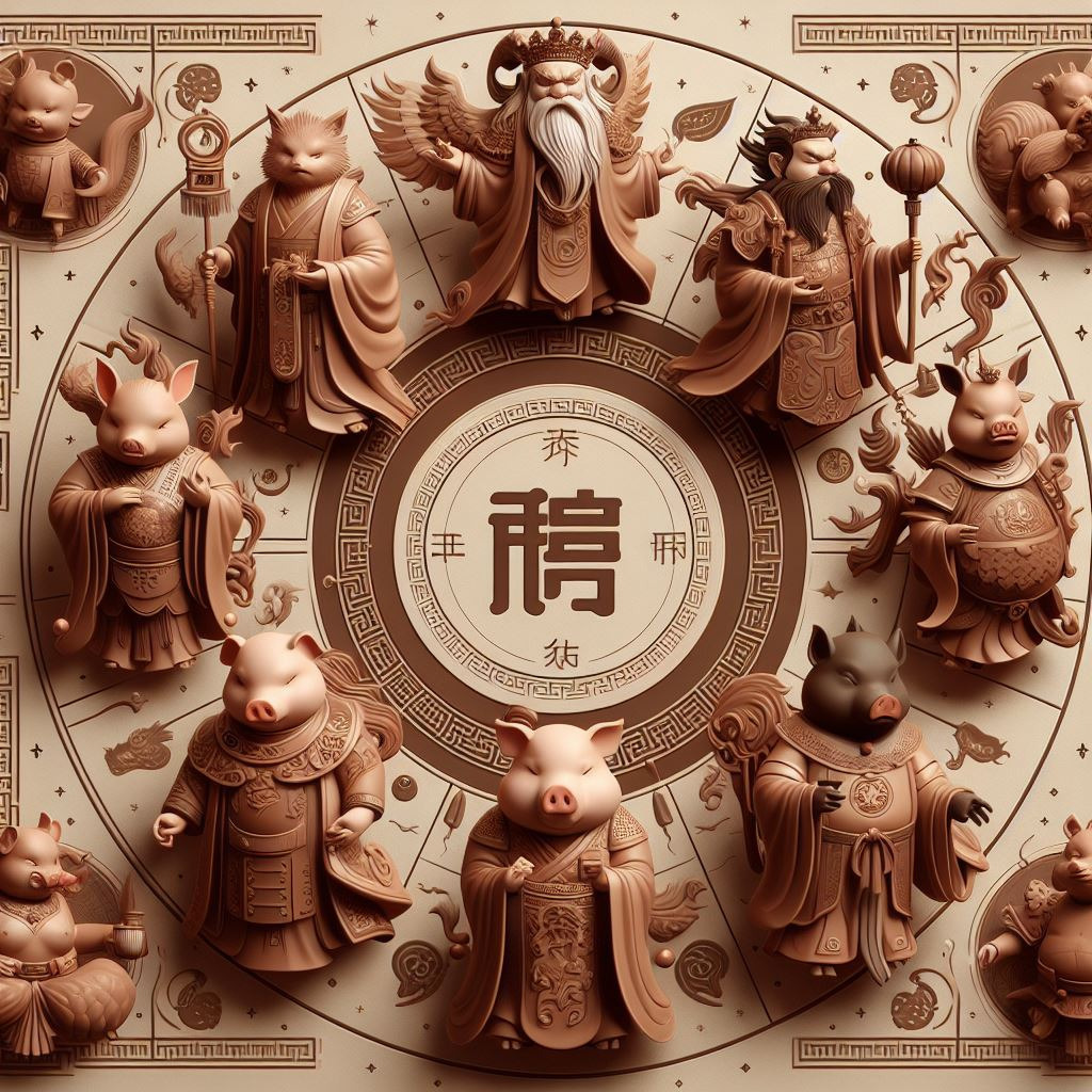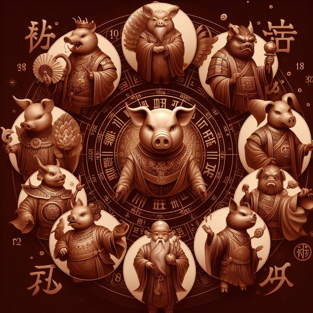 - 해(亥): 돼지 - 북서쪽, 밤 9~11시, 음수, 풍요, 행운