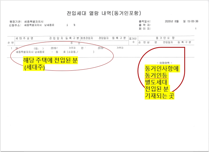 전입세대 열람확인서, 전입세대 열람내역서란 무엇인가?