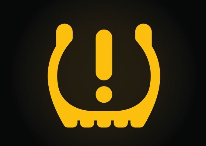 타이어의 공기압이 낮을 때 나타나는 경고등이다. 타이어 압력을 정상 수준으로 조절해야 한다.