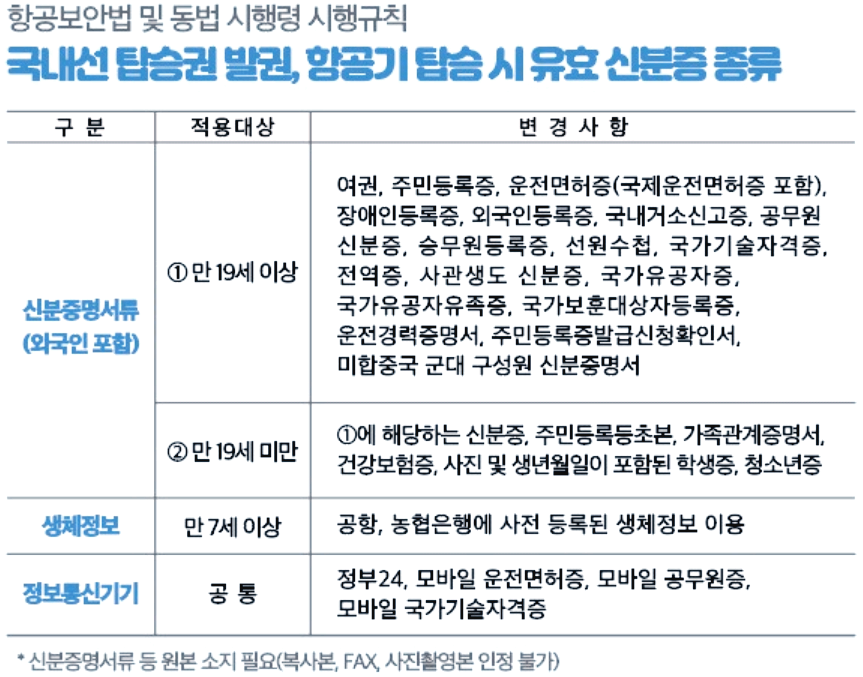 - 여권: 해외여행 시 필요한 신분증이지만, 국내선에서도 신분 확인을 위해 사용할 수 있습니다.