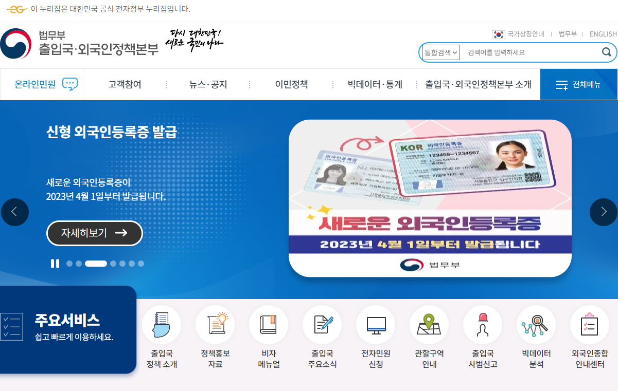 출입국관리사무소 홈페이지의 주요 온라인 서비스