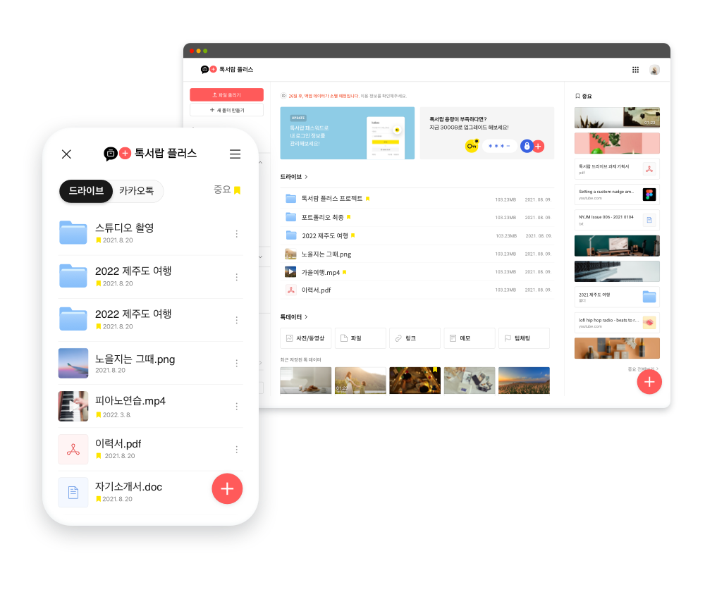 - 파일 전송: PC에 저장된 파일을 직접 카카오톡 채팅창으로 드래그 앤 드롭하여 전송할 수 있습니다.