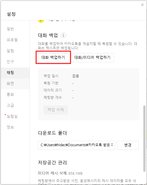 카카오톡 PC버전 대화 내용 백업 & 복구