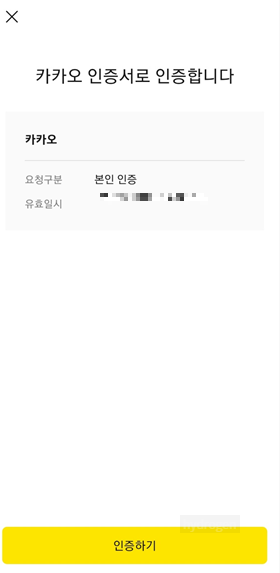 - 스마트폰을 통해 카카오 인증서를 통한 본인 인증을 진행합니다.