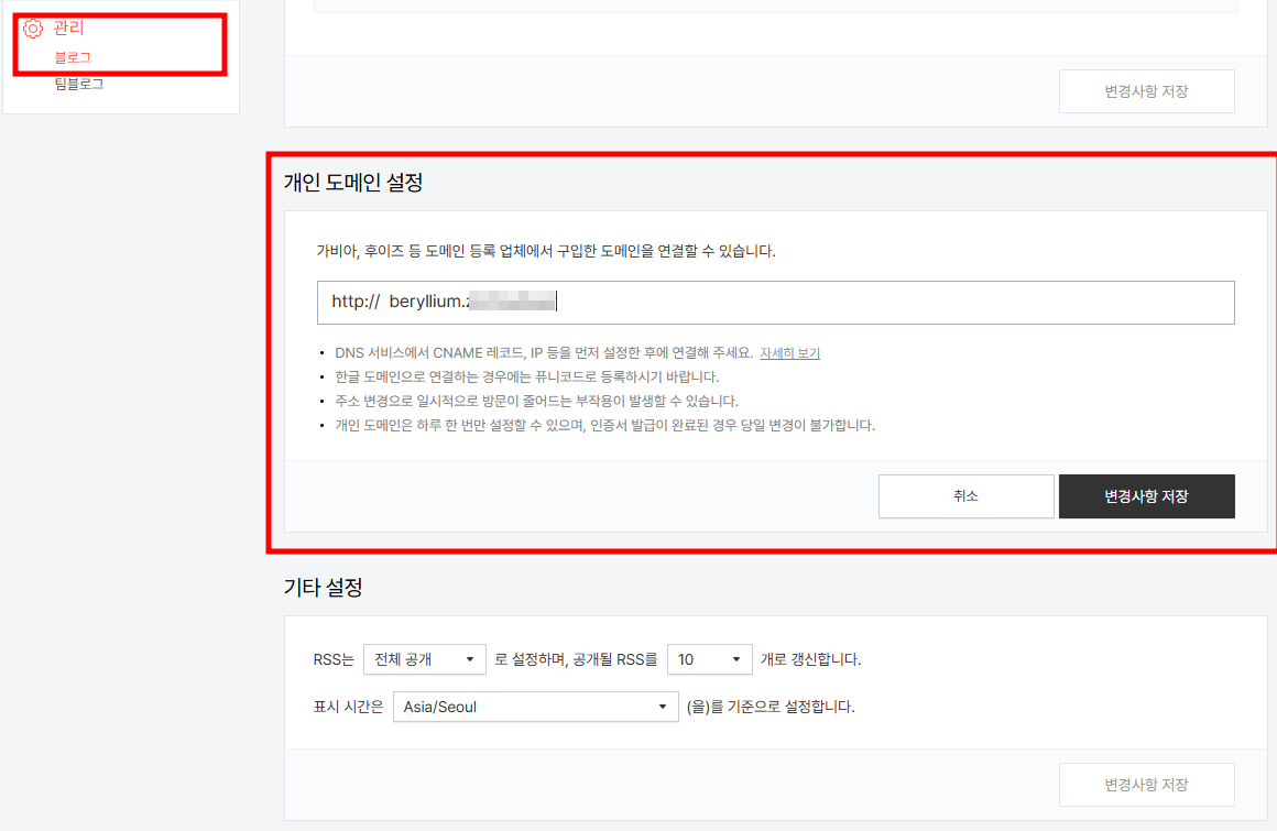 티스토리 개인 도메인 연결 설정하기