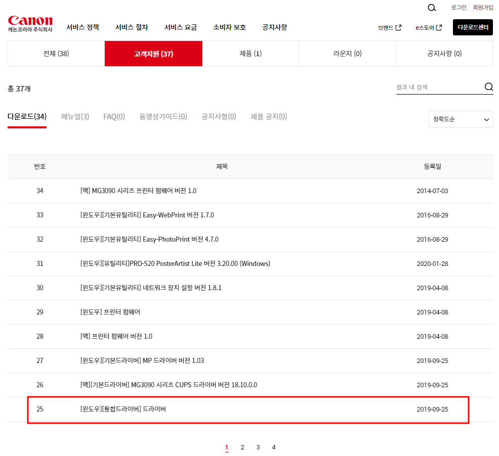 캐논 프린터 드라이버 다운로드 및 설치