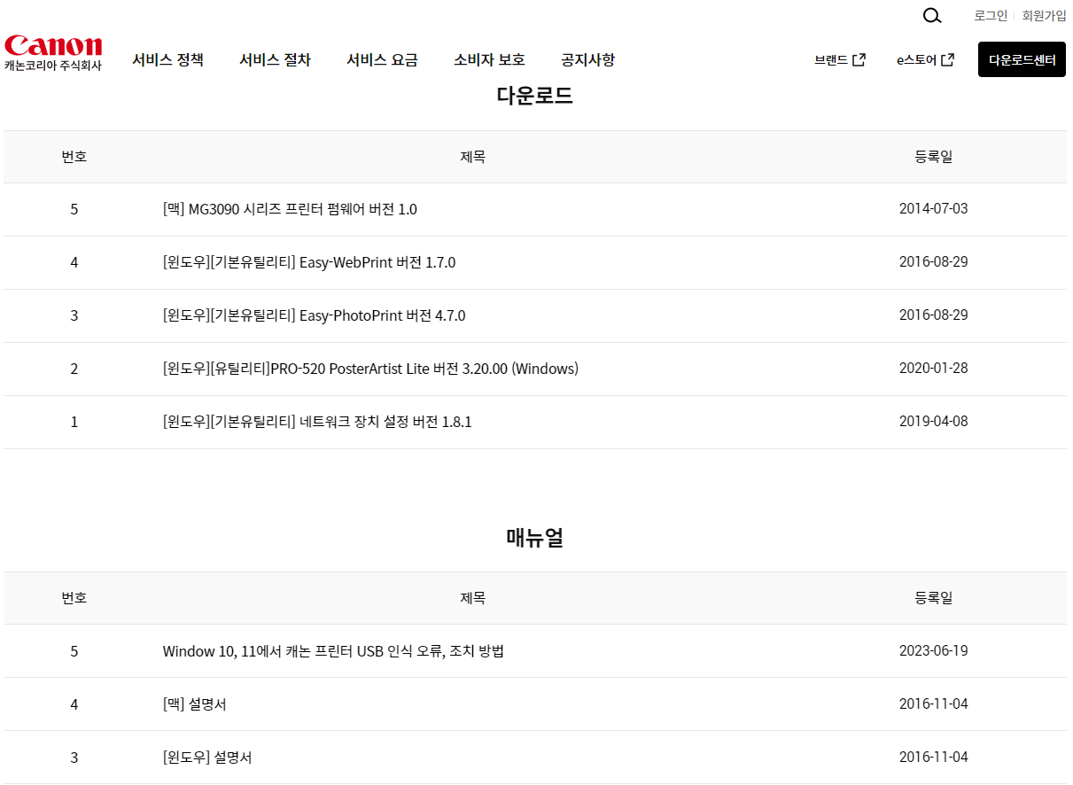 캐논 프린터 드라이버 다운로드 및 설치