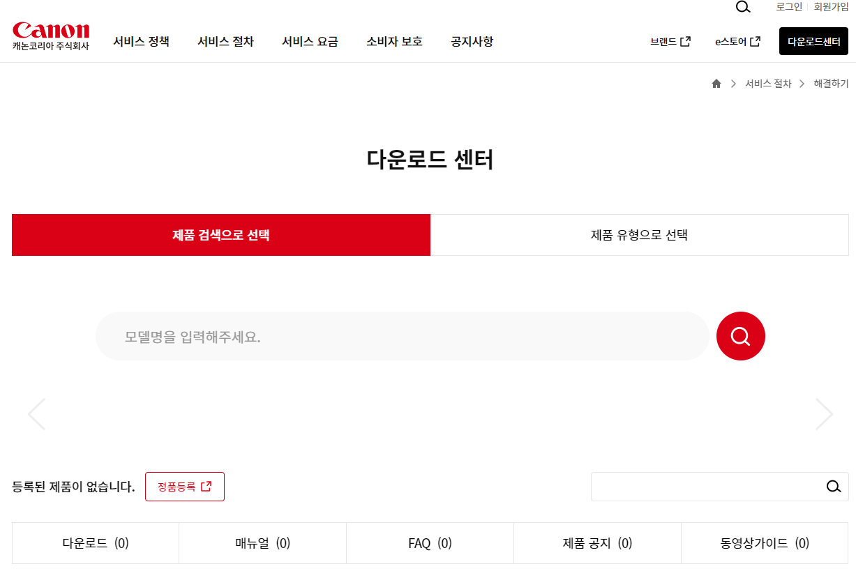 - 캐논 공식 홈페이지에 접속합니다.