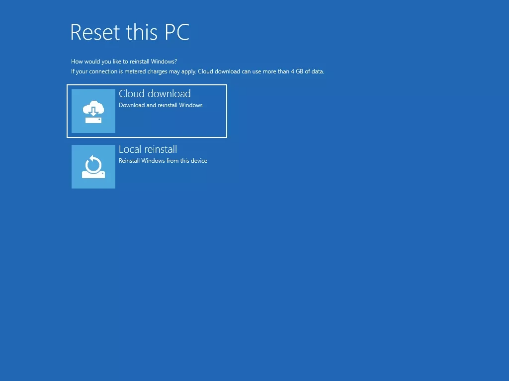 - 클라우드 다운로드: 최신 윈도우를 인터넷에서 다시 설치 (인터넷 필요, 최신 버전 장점)