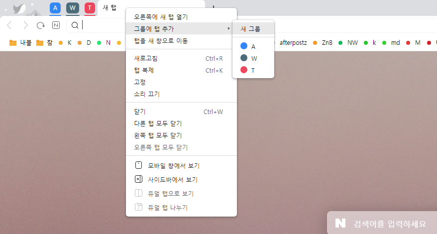 타 브라우저 그룹탭 기능