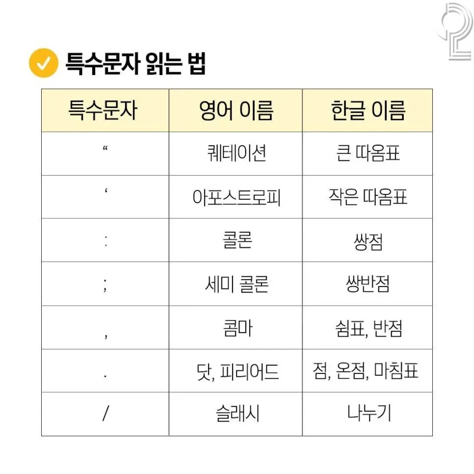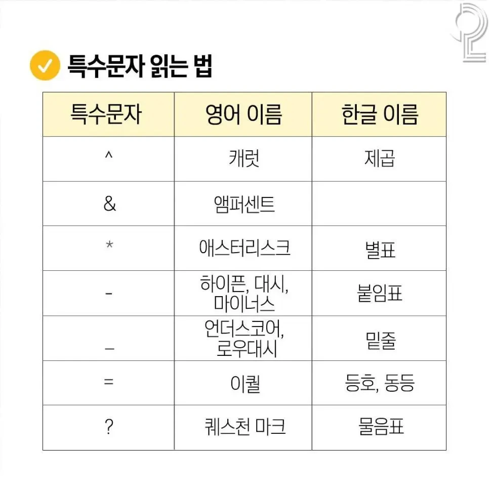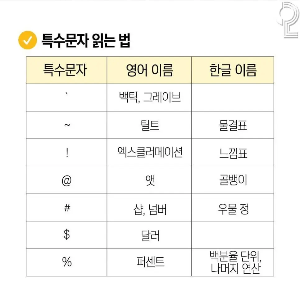 특수문자 명칭 읽기, 읽는법, 특수기호 이름 총정리
