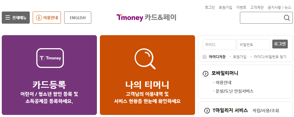 티머니 교통카드 충전 방법