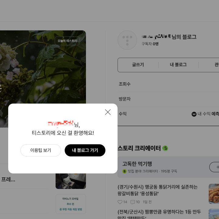 - 티스토리 메인에서 “시작하기” 클릭 → 카카오 로그인
