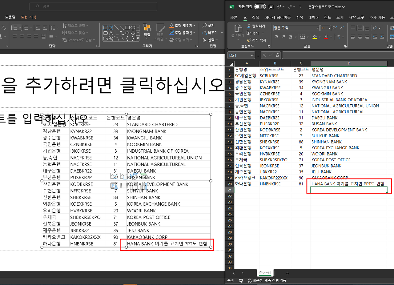 파워포인트 엑셀 차트 복사 PPT 표 추가하는 방법 연결하여 붙여넣기 데이터 링크: 엑셀과 파워포인트 자료 연동