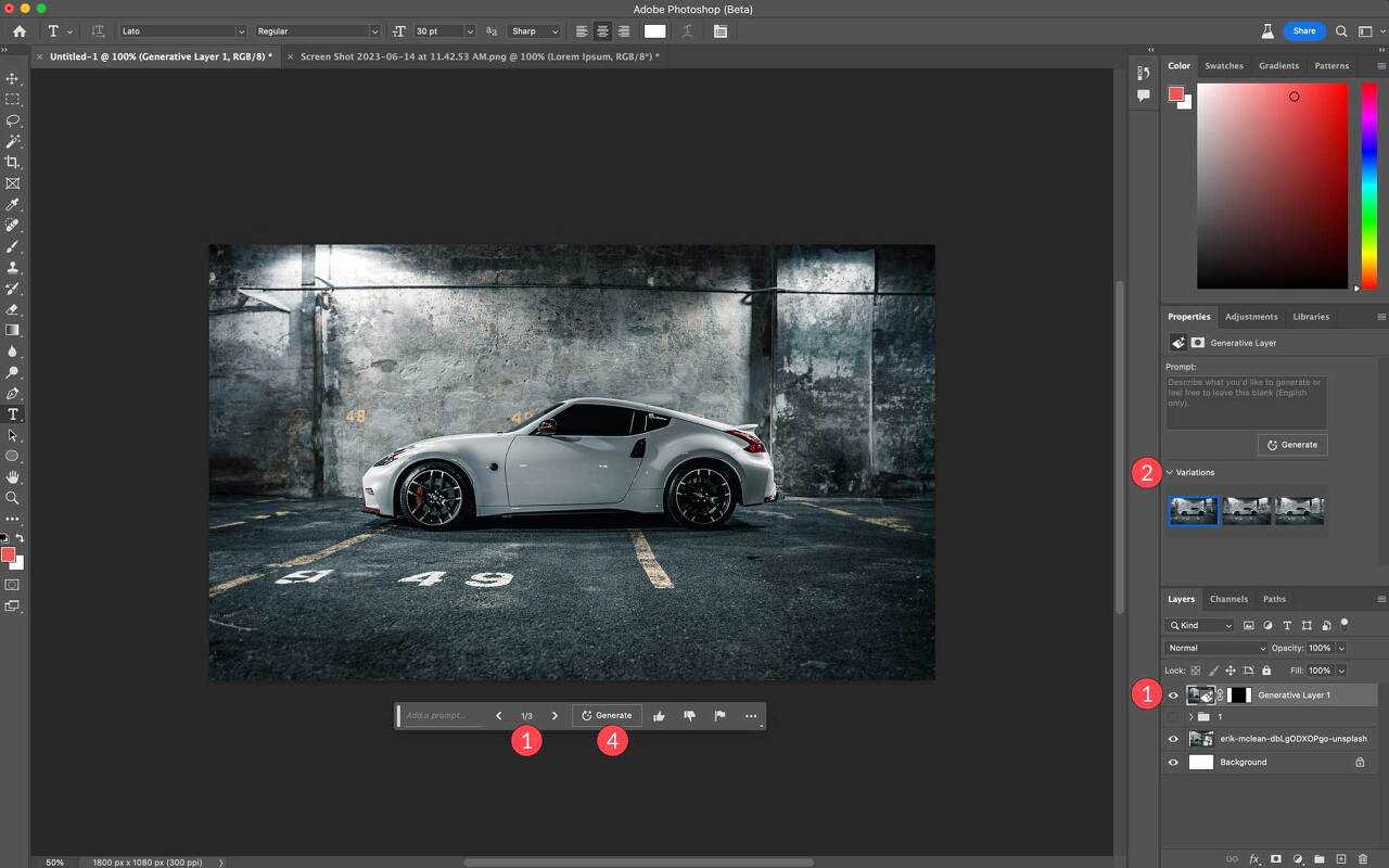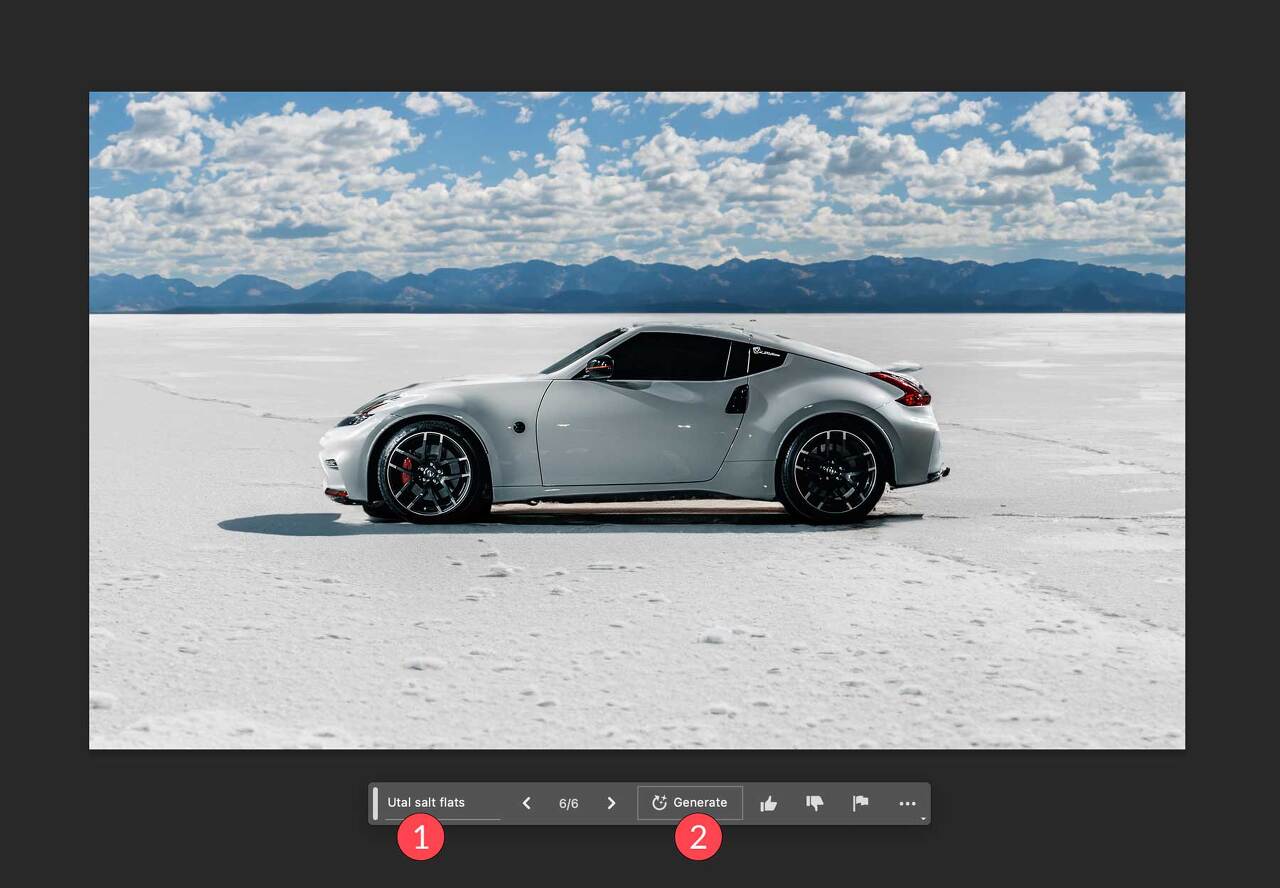 포토샵 AI로 배경 생성하기: 차량 이미지를 유타 소금 평원으로 변환해 보자