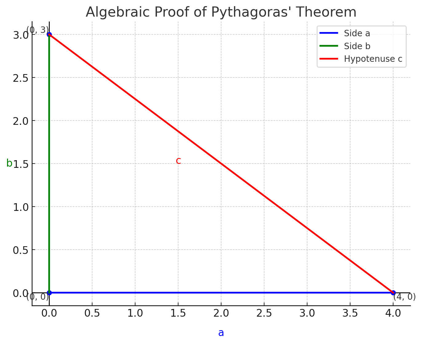 대수적 증명법은 수학적 논리 전개를 통해 피타고라스의 정리를 증명하는 방법으로, 대수와 기하가 연결되는 흥미로운 예시를 보여줍니다. 또한, 이 방법은 추상적인 수학적 원리를 구체적인 숫자와 기하 도형을 통해 설명할 수 있어, 학생들이 기하와 대수의 상호작용을 이해하는 데 도움을 줍니다.