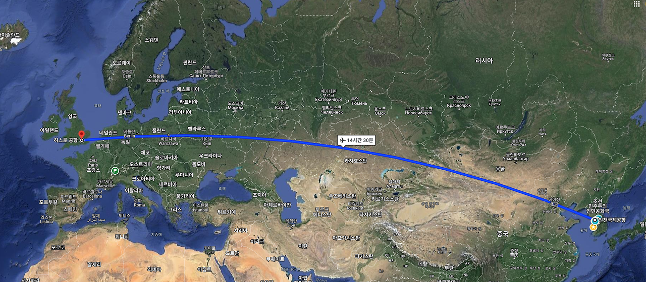한국에서 영국까지 비행시간