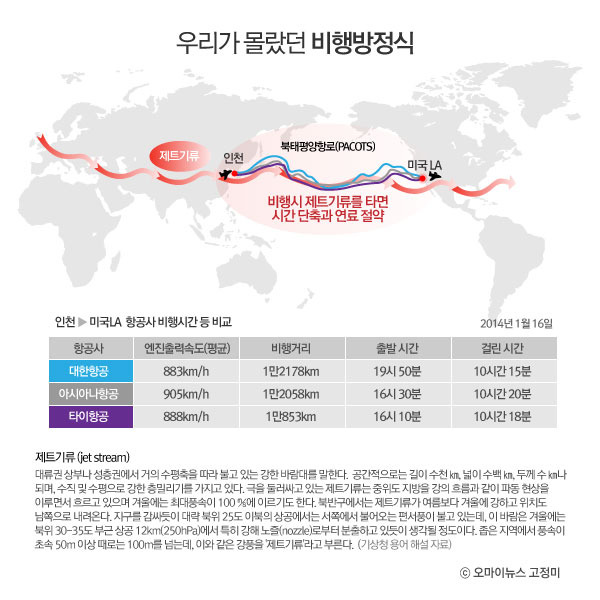 - 항공기의 속도와 바람: 비행 중의 바람, 특히 제트기류는 비행시간에 큰 영향을 미칩니다. 제트기류가 비행 방향과 일치하면 비행시간이 단축될 수 있으며, 반대 방향일 경우 비행시간이 늘어날 수 있습니다.