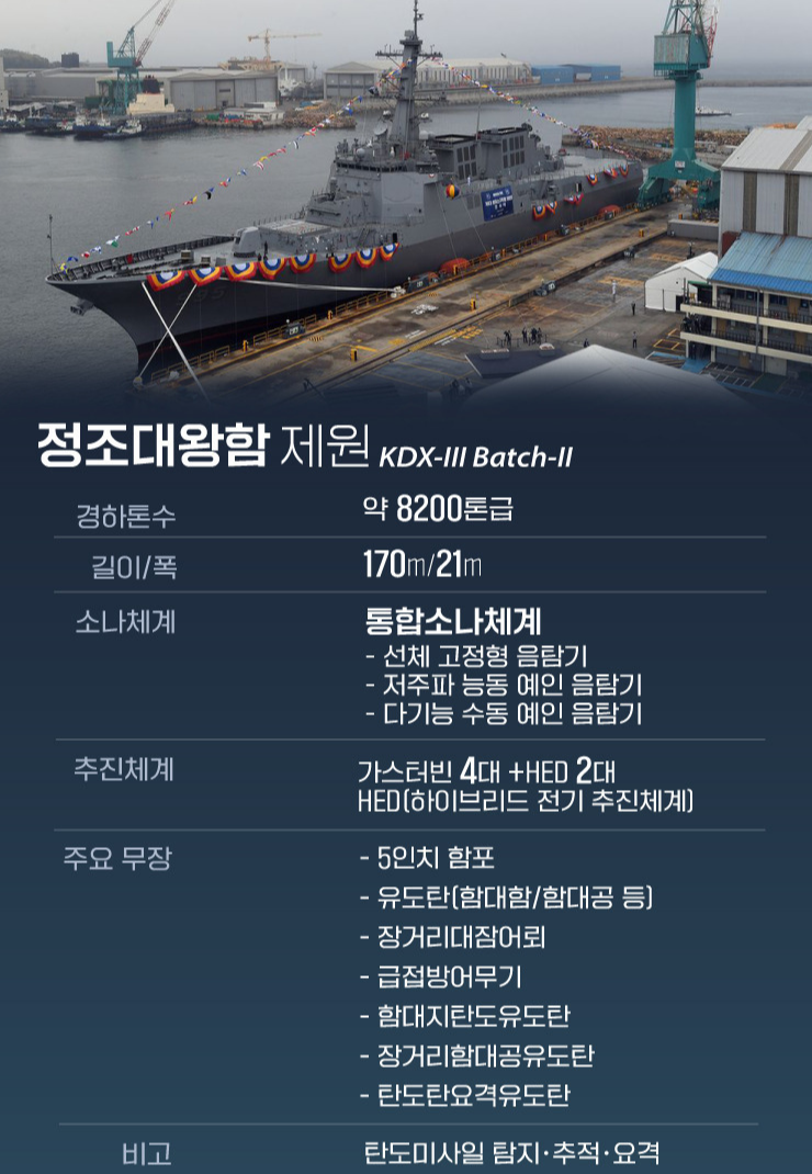 - 정조대왕함 (DDG-995) - 2023년 진수, 2024년 실전배치 예정. 8,200톤급
