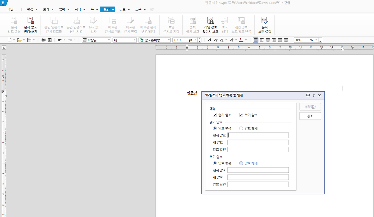 한글 암호 설정방법