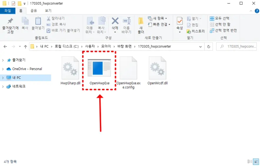 - 압축을 해제한 후, 'OpenHwpExe' 파일을 실행합니다.