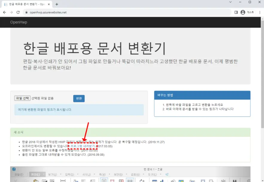 OpenHwp 사이트 이용 방법
