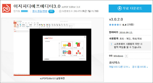 - 다운로드가 완료되면 설치 파일을 실행하여 이지 피디에프 에디터 3.0을 설치합니다.