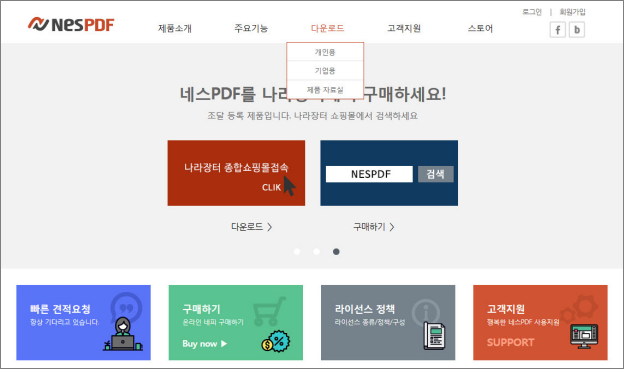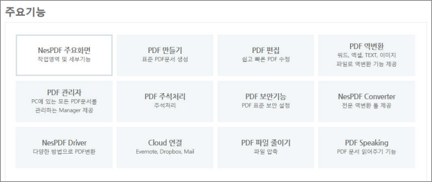 홈페이지의 주요 기능 메뉴에는 NESPDF의 기능이 자세하게 설명되어 있으니 참고하시면 좋습니다.