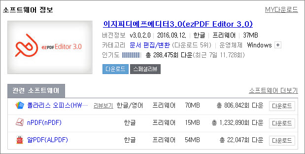 - 네이버 소프트웨어 정보에서 "이지 피디에프 에디터 3.0"을 검색합니다.
