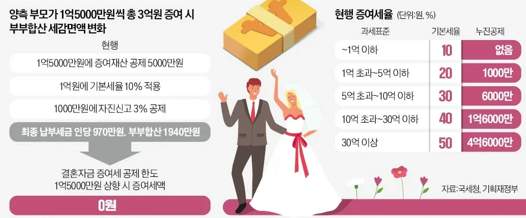 - 증여세 기본세율은 누진세율 10-50%입니다.