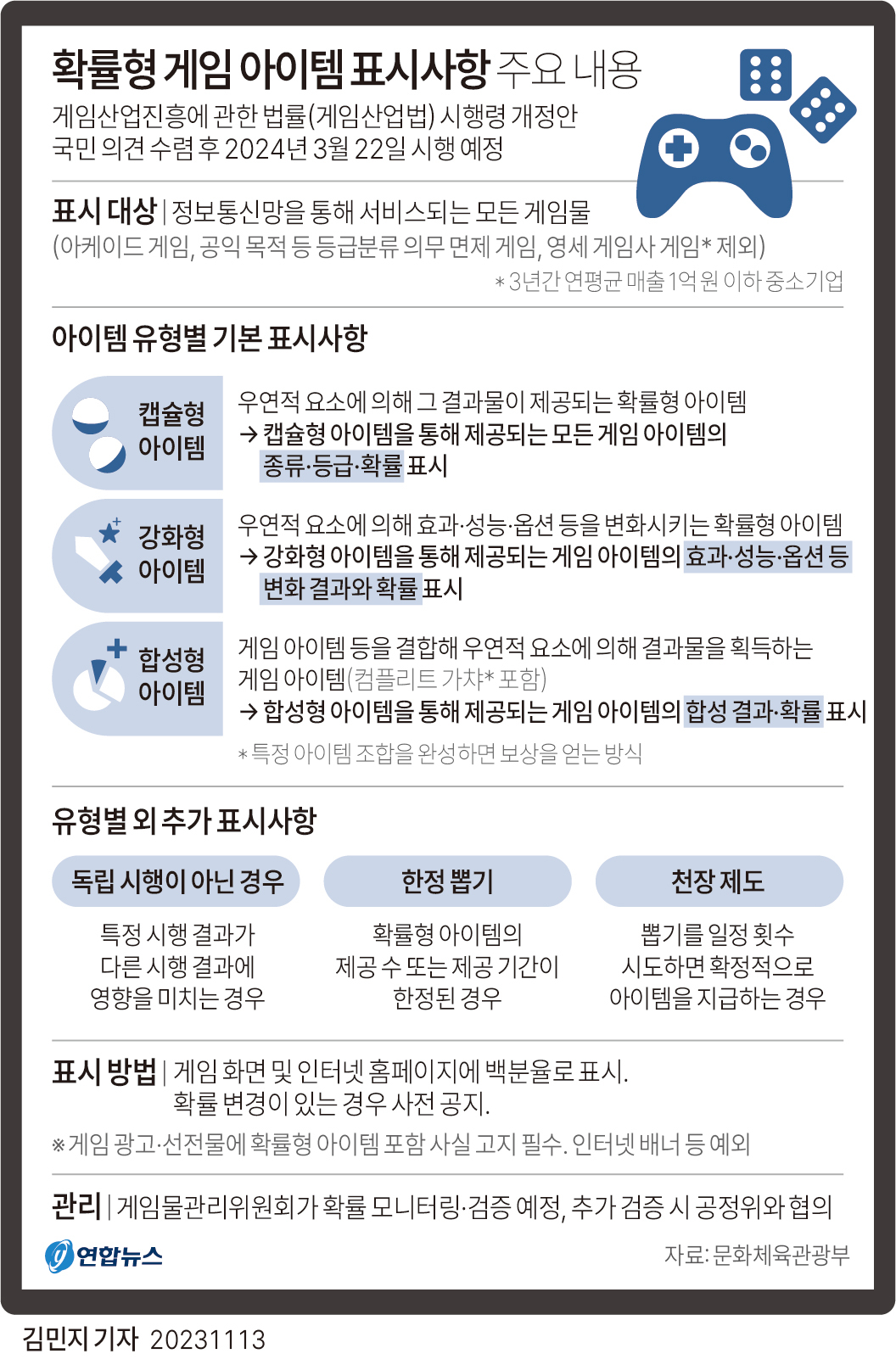 확률형 아이템 게임산업법 개정안의 주요 내용