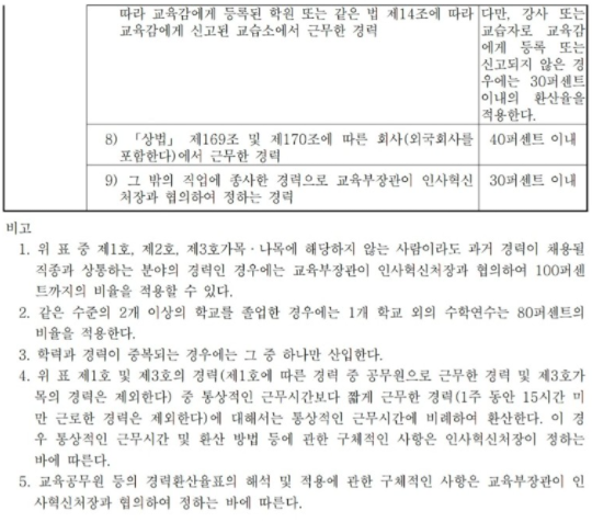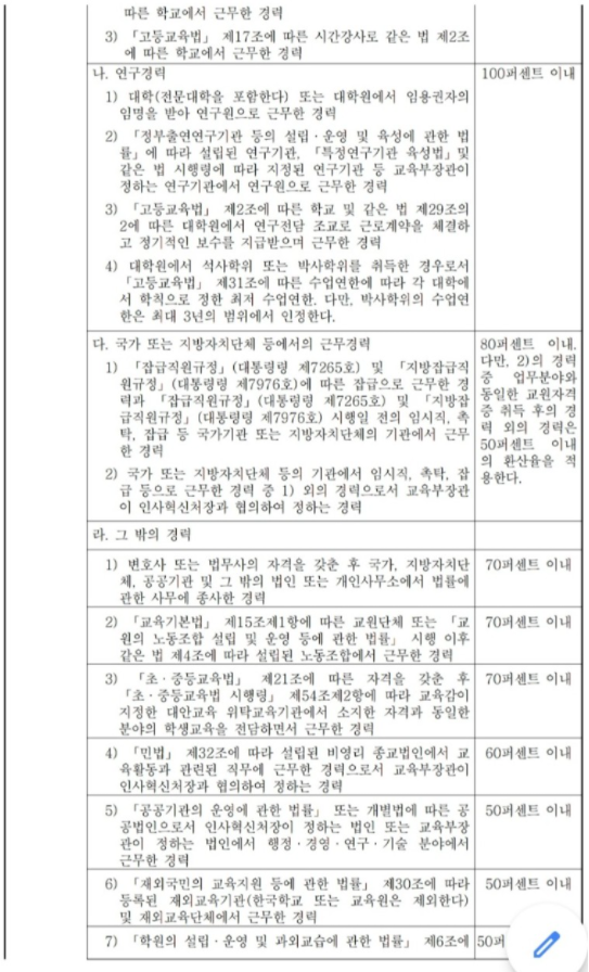 - 교원 경력: 대학이나 학력을 인정해 주는 기관에서 근무한 적이 있는지를 확인합니다. 대부분의 대학 조교는 이에 해당하지 않을 것입니다.
