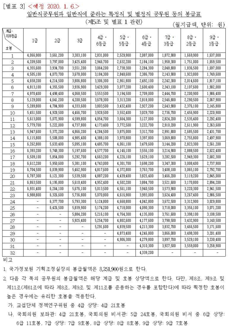 다음은 2020년 경찰 공무원 봉급표 2020 소방공무원 봉급표입니다.