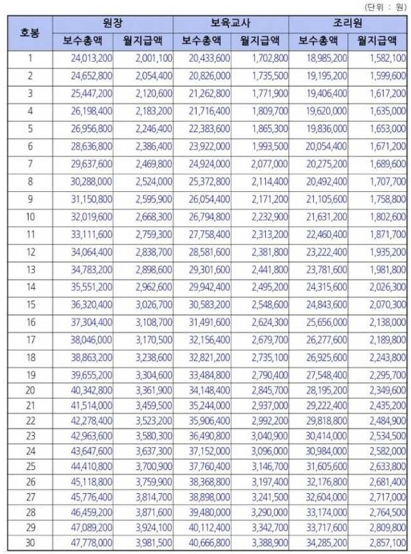 교감이건 교장이건 이 호봉표에서 자유롭진 않습니다.
