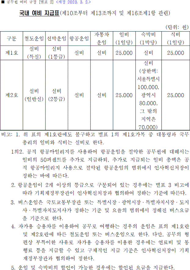 2024년 공무원 여비규정: 관외 출장 숙박비, 교통비, 식비, 교사 관내 출장비 및 일비