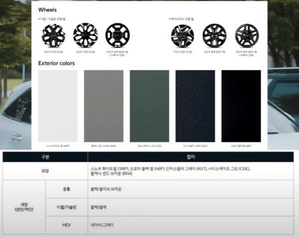 2024년형 기아 쏘렌토 페이스리프트의 차량 색상은 총 다섯 가지로 다양한 선택을 제공합니다. 이번 페이스리프트에서는 기존의 런웨이 레드와 미네랄 블루는 삭제되었으나, 새로운 색상 옵션을 통해 차량의 개성을 더욱 돋보이게 할 수 있습니다.
