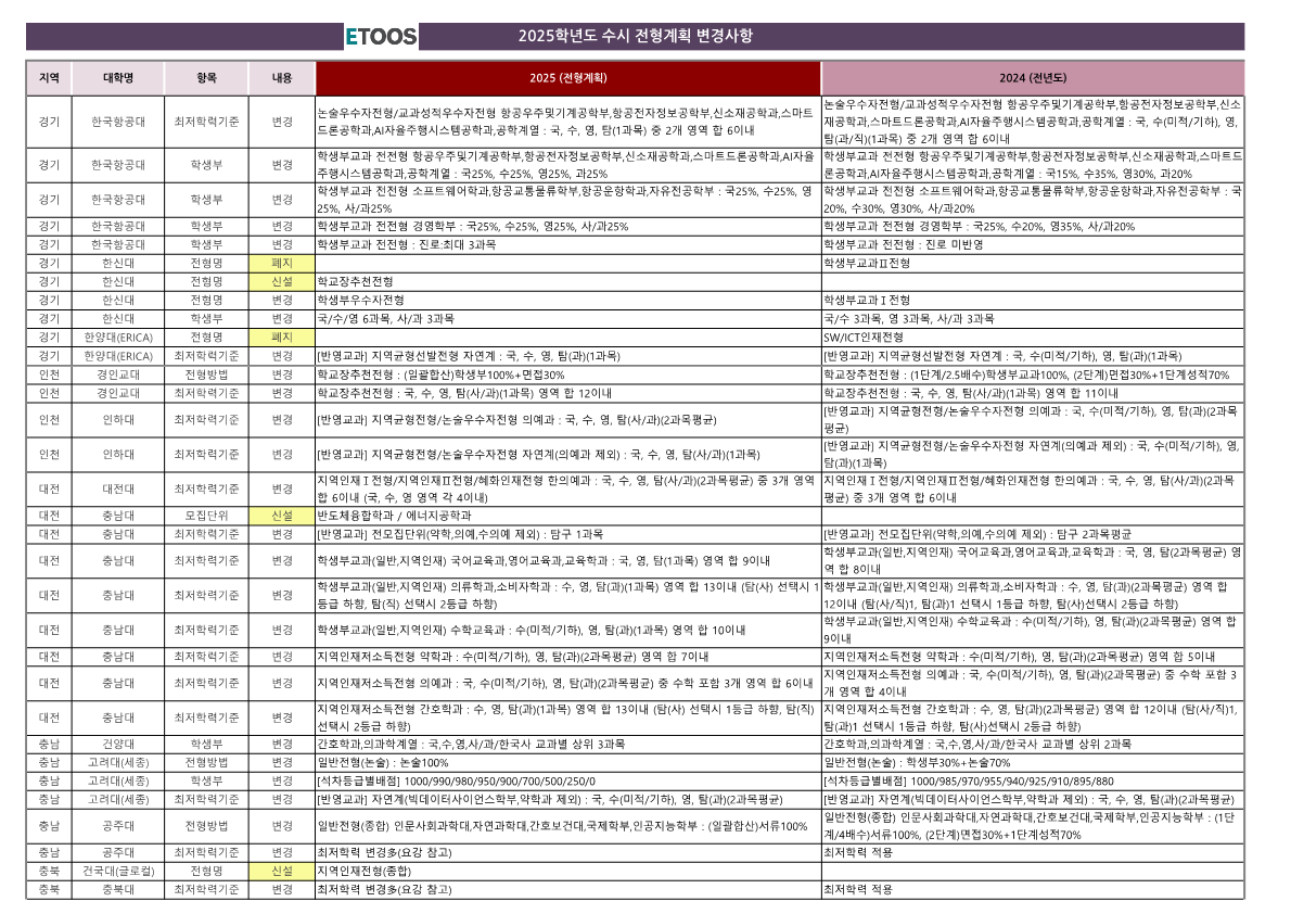 주요 전형 변경사항 요약