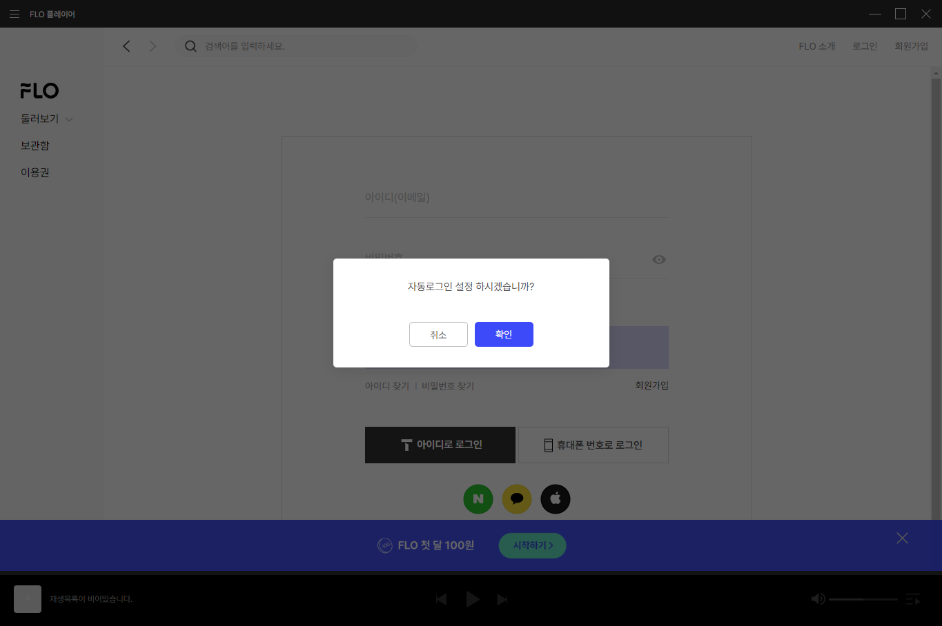 - 로그인 시도: 이제 FLO 웹사이트에서 로그인을 시도하면 모바일 환경에서와 같이 정상적으로 로그인할 수 있습니다.