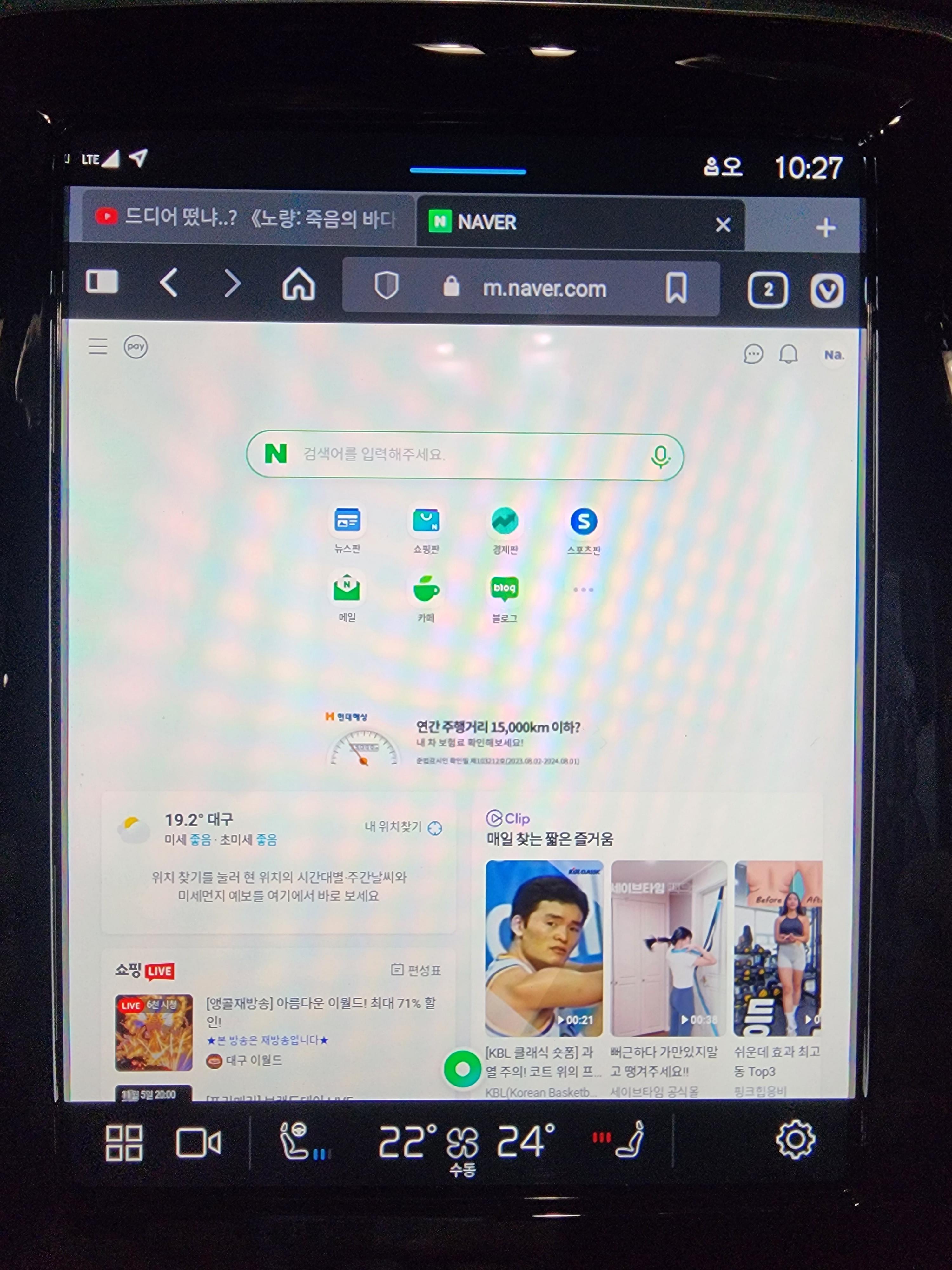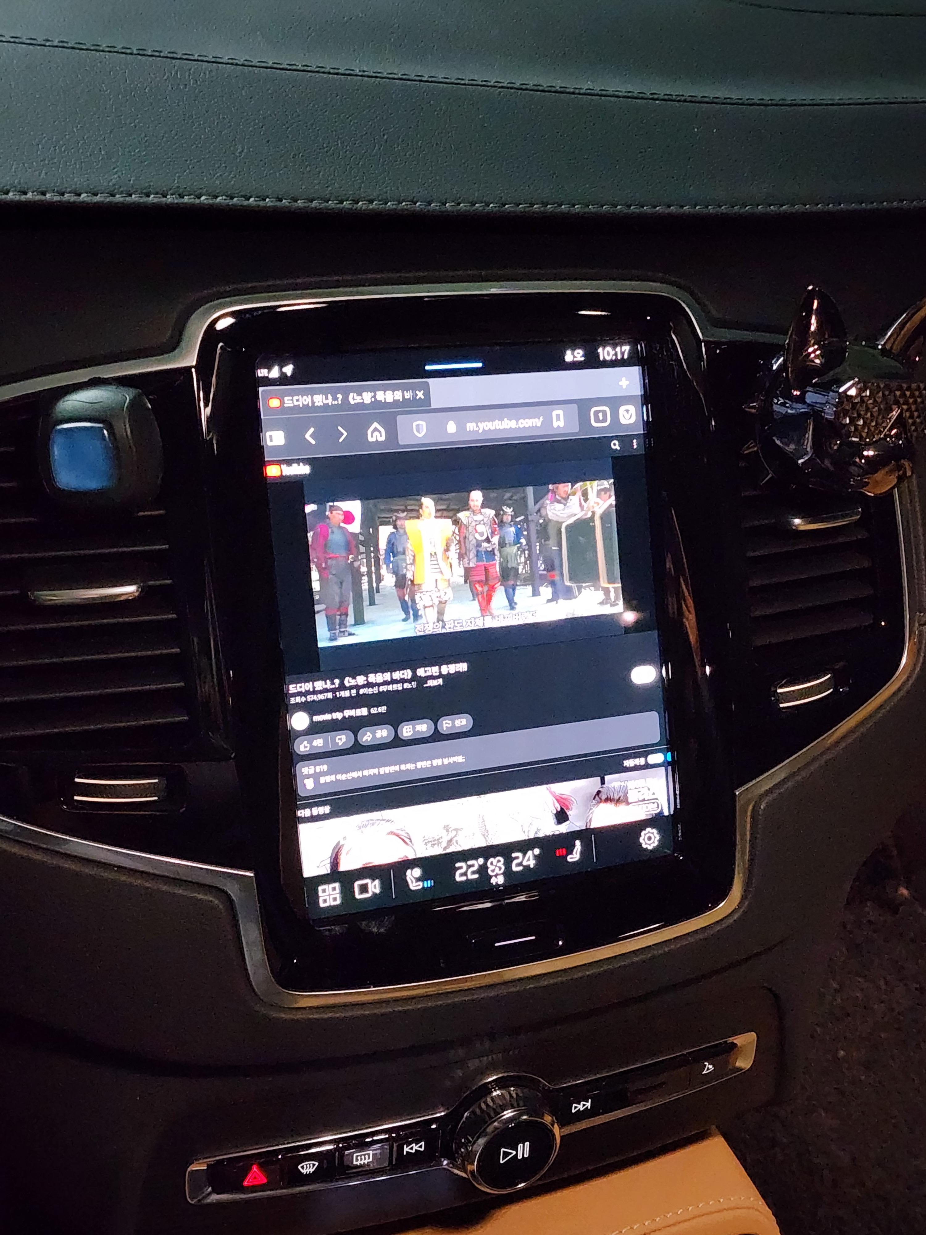 당연하지만, 안전의 볼보는 주행중에는 웹브라우저를 보지 못하게 막아줍니다. 또 당연하지만 주행 중에 비발디브라우저를 통해서 유튜브를 감상할 수는 없습니다. 휴게소에서 휴식하거나, 장시간 정차 상태로 대기 중일 때만 볼 수 있습니다. 그런데 사실 볼보의 내비게이션 화면용인 인포테인먼트 화면은 세로로 놓여 있어서 유뷰브 영상을 최대크기로 키워도 스마트폰 가로 모드 화면보다 조금 더 클 뿐입니다. 아리아한테 틀어달라고 해도 아직 아리아는 "비발디"도 "브라우저"도 인식하지 못합니다. 일일이 손으로 터치해서 원하는 주소로 들어가야 합니다. 다행히 티맵스토어의 비발디 웹브라우저도 탭화면을 지원하기 때문에 자주 방문하게 될 웹사이트는 탭마다 띄워 두면 될 것 같습니다.