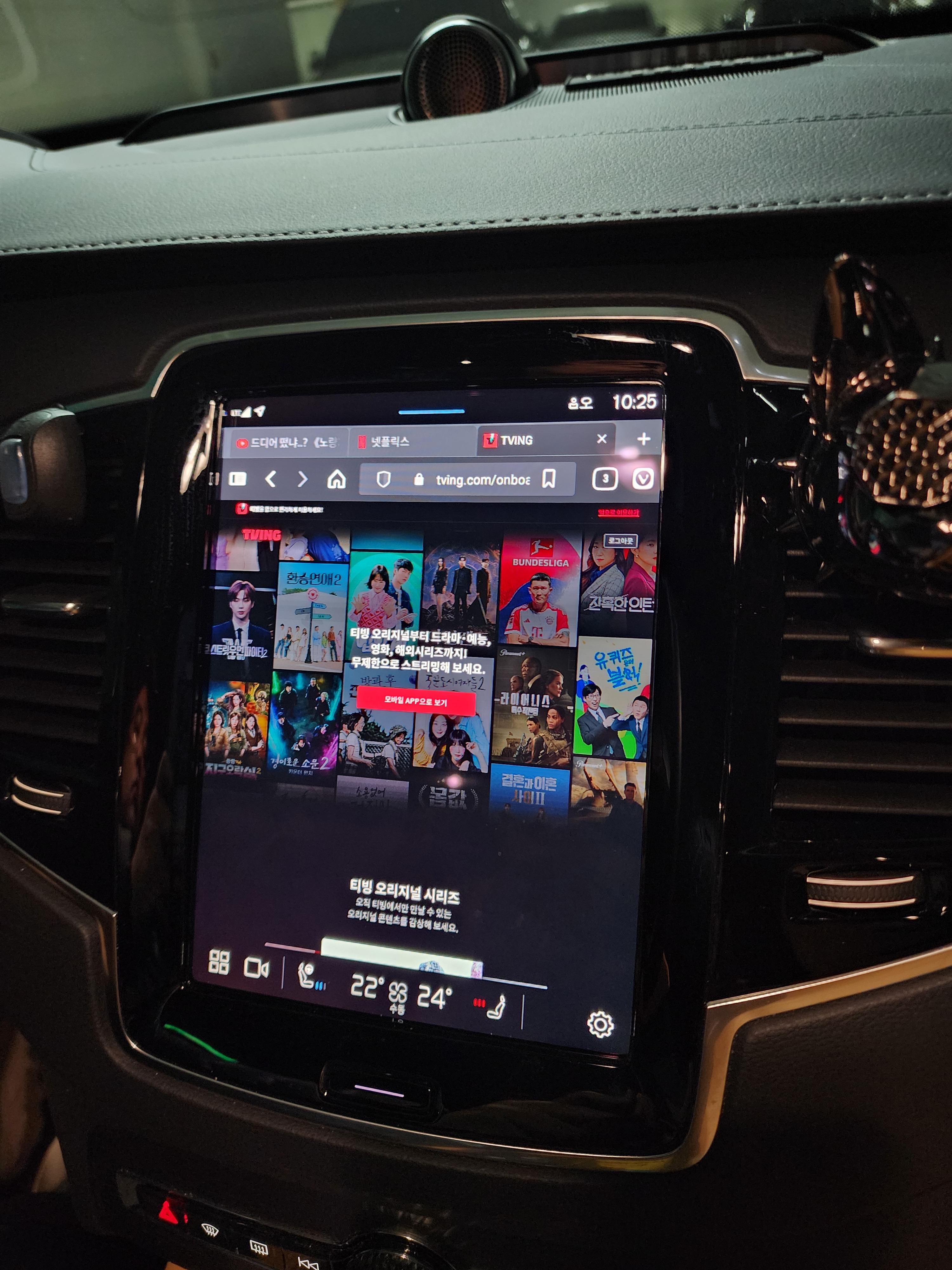 티맵스토어에서 주목할 점은 비발디 웹 브라우저의 도입입니다. 볼보와 마찬가지로 스웨덴 태생인 비발디 웹브라우저는 저도 스마트폰과 PC에서도 사용하고 있는 브라우저입니다. 중요한 것은 웹브라우저라는 점이죠. 차량에 장착된 브라우저를 통해 운전자는 차량에서도 인터넷 검색, 유튜브 시청이 가능해졌습니다. 다만, 넷플릭스나 티빙은 아직 지원하지 않습니다.