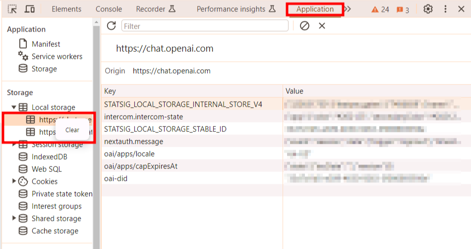 Chat GPT 먹통 에러 해결, OpenAI 멎음 현상을 간단히 고치는 방법 2가지: Local Storage 삭제 및 Clear