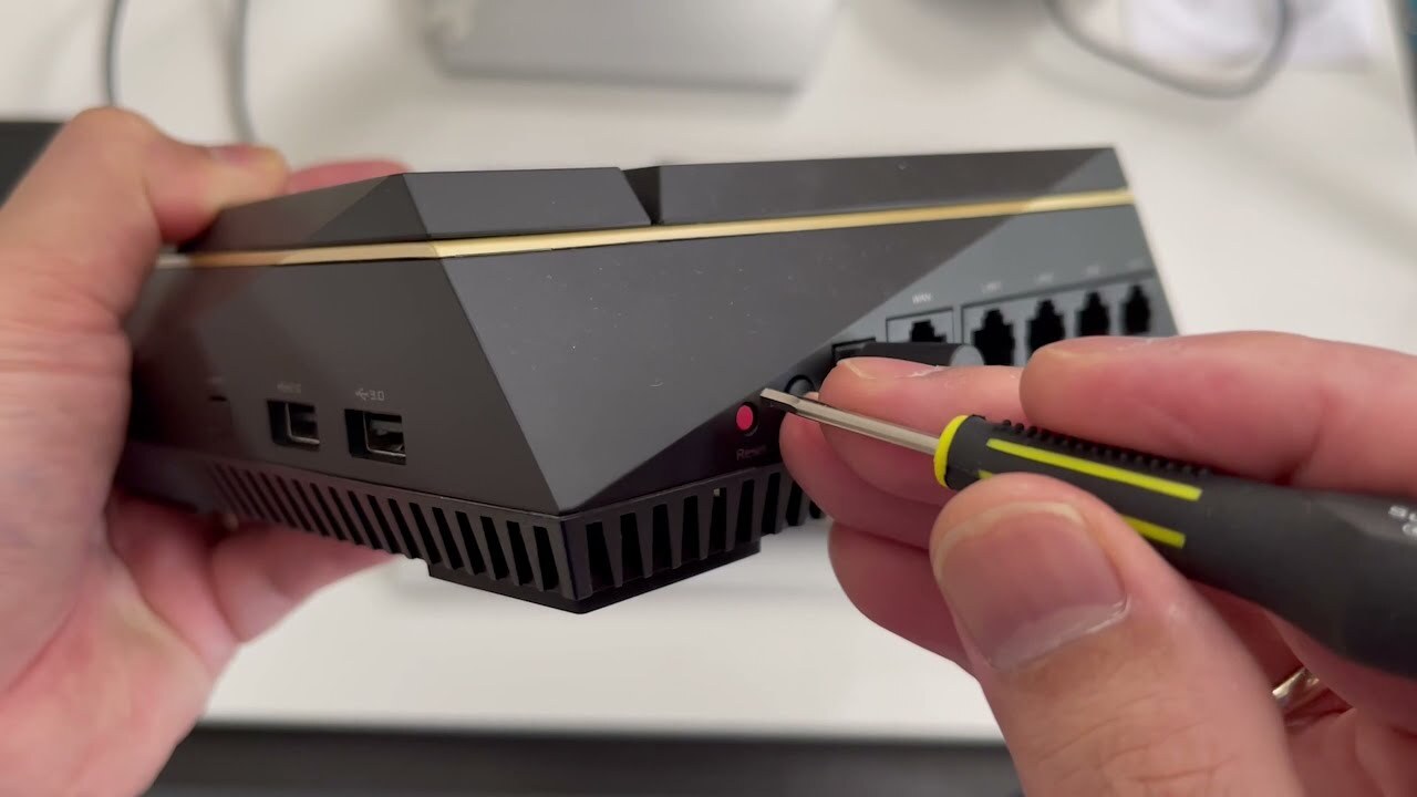 - ASUS 공유기의 리셋 버튼을 찾습니다. 일반적으로 공유기 뒤쪽에 위치합니다.
