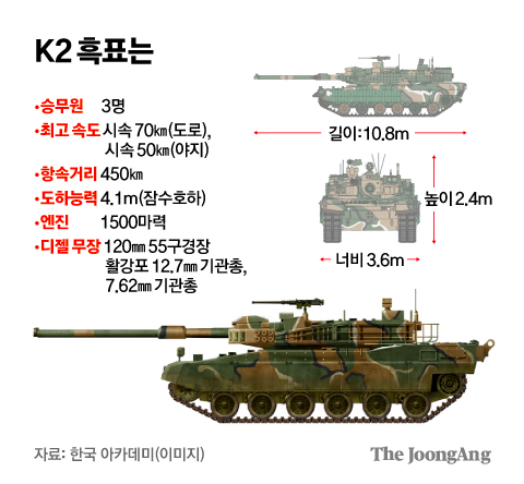 한국 전차 보유대수 및, K1 탱크 제원·K2 흑표 가격