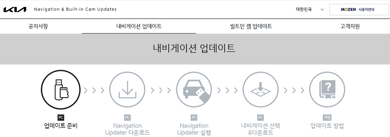 - 업데이트 진행 시 내비게이션이 켜진 상태를 유지하는 것이 가장 중요합니다.